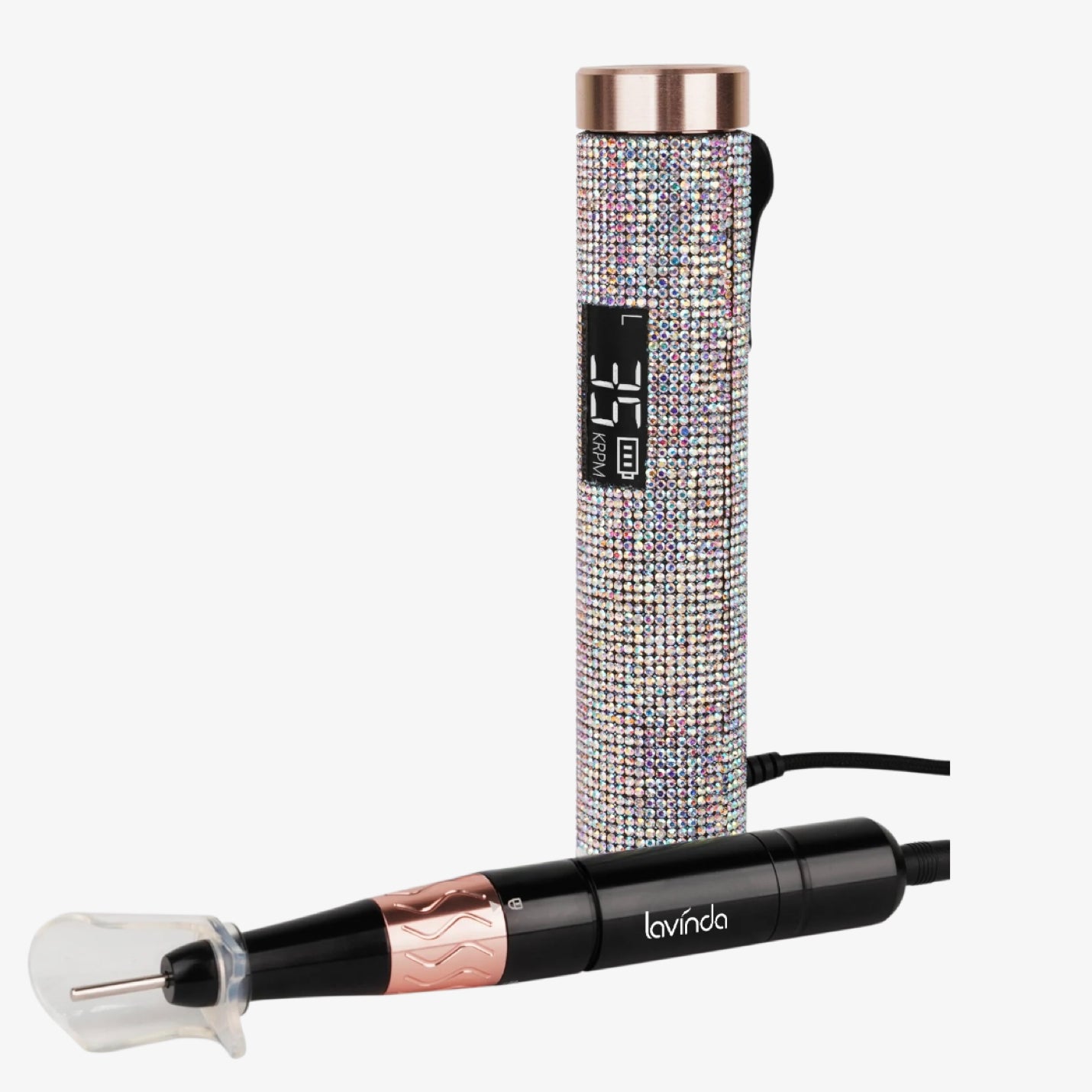 The One That’s Tiny but Sparkles with Power. The Lavinda Wand Lite 35,000 RPM Rechargeable Nail Drill - Crystal Diamond is your dazzling pocket-sized drill—compact, cordless, and built to impress.